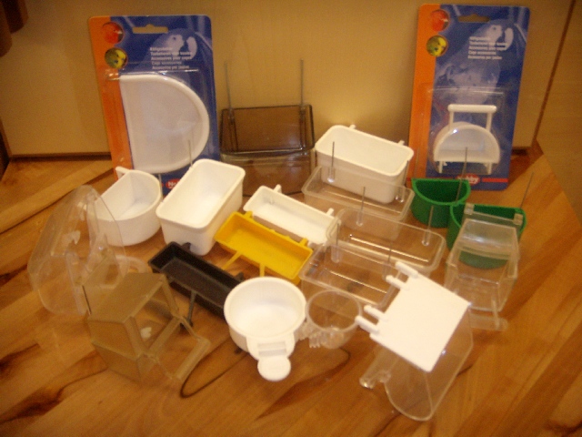 Egal ob für den Ausstellungskäfig oder für den Käfig zuhause. Wir führen verschiedene Näpfe für Horizontal- und Vertikalverdrahtung.