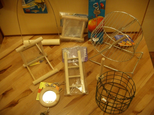 Hamsterräder, Spiegel und Sitzstangen zählen ebenfalls zu unserem Sortiment.