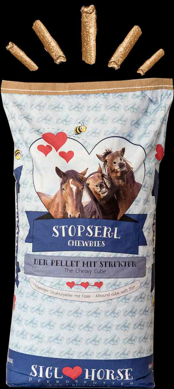 Unsere Siglhorse Stopserl sind klein, fein und man füttert sie allein (ergänzend zu Raufutter). Stopserl haben auch Struktur: aufgrund unseres Verarbeitungsverfahrens bleibt trotz pelletierter Form möglichst viel Struktur der Rohstoffe erhalten. Dadurch wird auch der Abrieb gering gehalten.